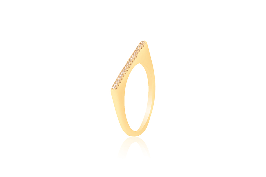 ANEL BANHADO EM OURO, COM 31 ZIRCÔNIAS NAVETE E REDONDA