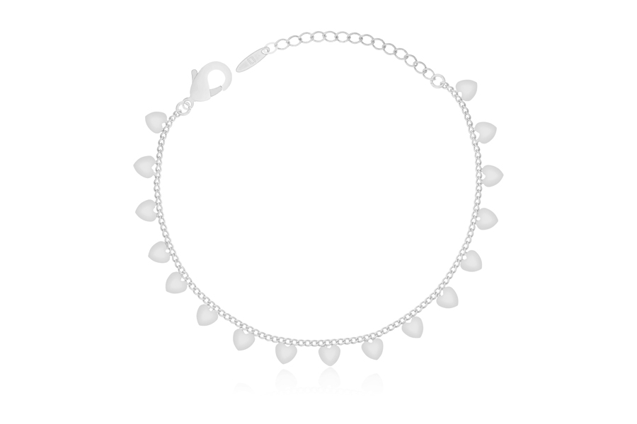 PULSEIRA BANHADA EM RÓDIO BRANCO, ELO PORTUGUÊS 2,50mm DIÂMETRO, 17cm COMPRIMENTO E CORAÇÃO 11mm LARGURA