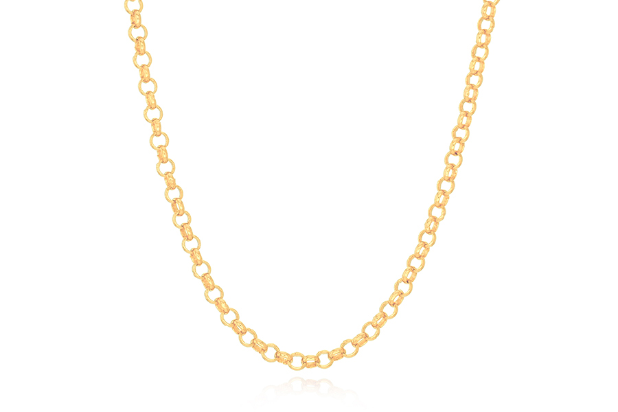 CORRENTE BANHADA EM OURO, CORDA 4mm, 45cm COMPRIMENTO, EXTENSOR 5cm COMPRIMENTO E PESO 22,50g