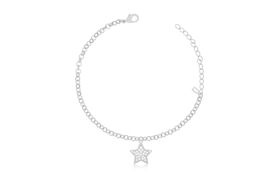 PULSEIRA BANHADA EM PRATA LEVE, ELO PORTUGUÊS 3mm, 16cm COMPRIMENTO, EXTENSOR 5cm E ESTRELA 10mm LARGURA