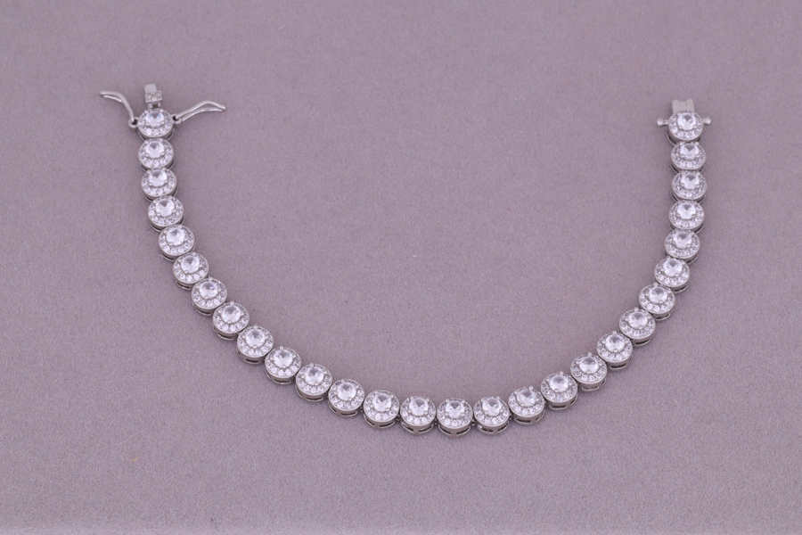 PULSEIRA BANHADA EM RÓDIO BRANCO, ELO PORTUGUÊS 2,50mm DIÂMETRO, 17cm COMPRIMENTO E CORAÇÃO 11mm LARGURA