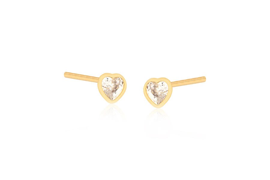 BRINCO BANHADO EM OURO, CORAÇÃO 9mm LARGURA COM ZIRCÔNIAS BRANCAS OU COLORIDAS