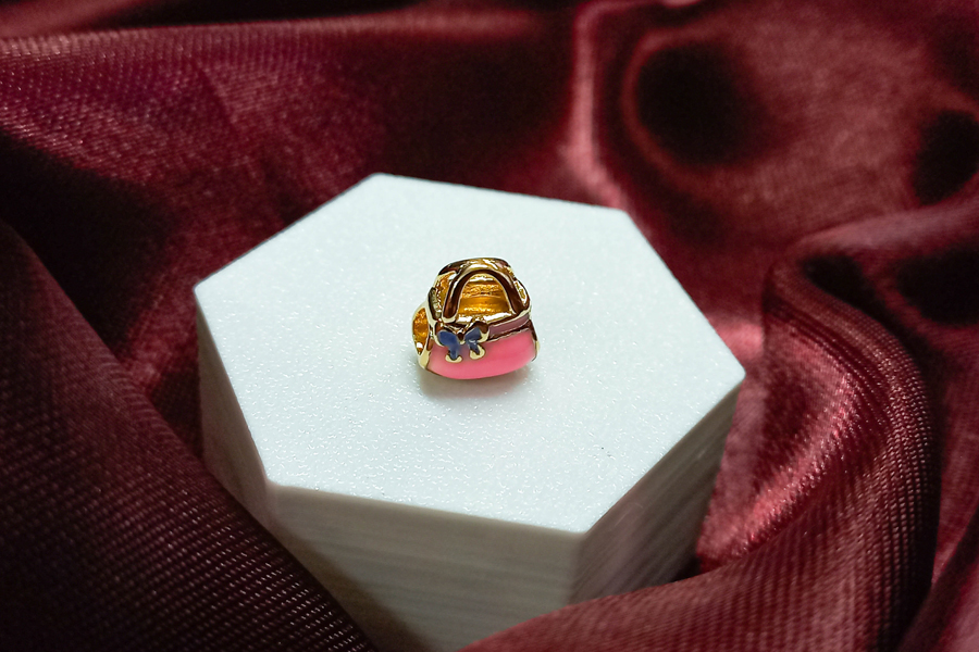 PINGENTE EM PRATA, INFANTIL, BOLSA RESINADA 8,80mm ALTURA, COM BANHO DE OURO