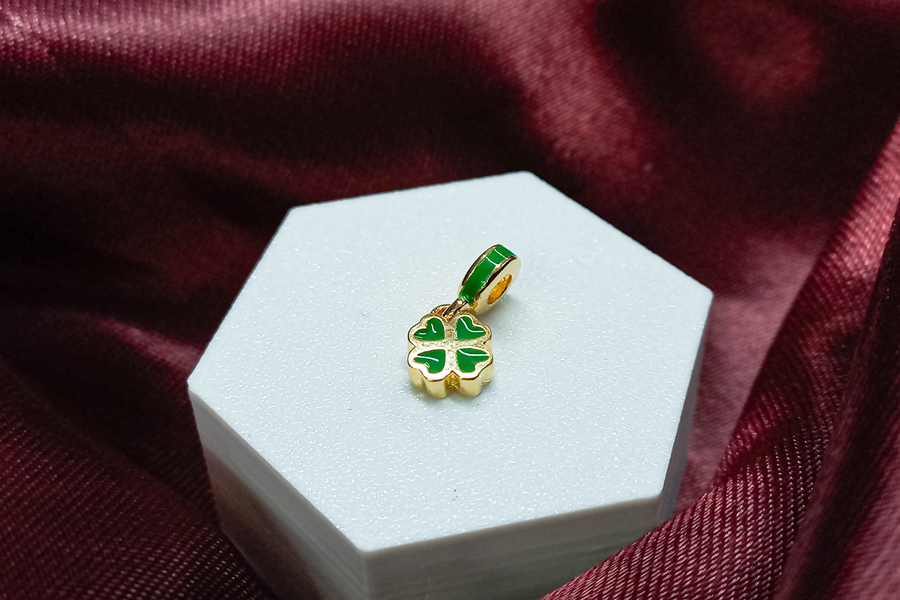 PINGENTE EM PRATA, INFANTIL, TREVO DE 4 FOLHAS, COM BANHO DE OURO