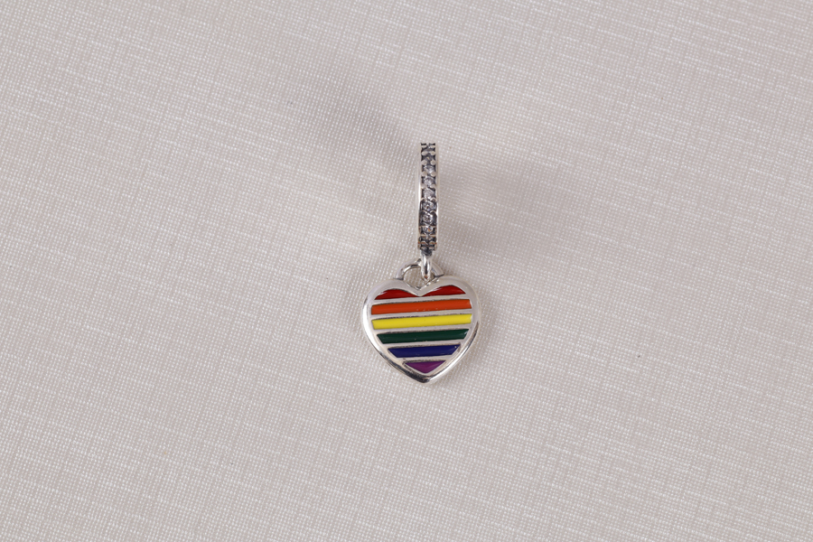 PINGENTE EM PRATA, CORAÇÃO RESINADO COLORIDO 11,30mm LARGURA, CONTRA ARGOLA CRAVEJADA