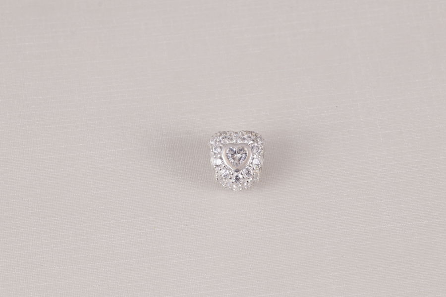 PINGENTE EM PRATA, SEPARADOR, CORAÇÃO TODO CRAVEJADO COM ZIRCÔNIA CORAÇÃO NO CENTRO, 11,50mm ALTURA