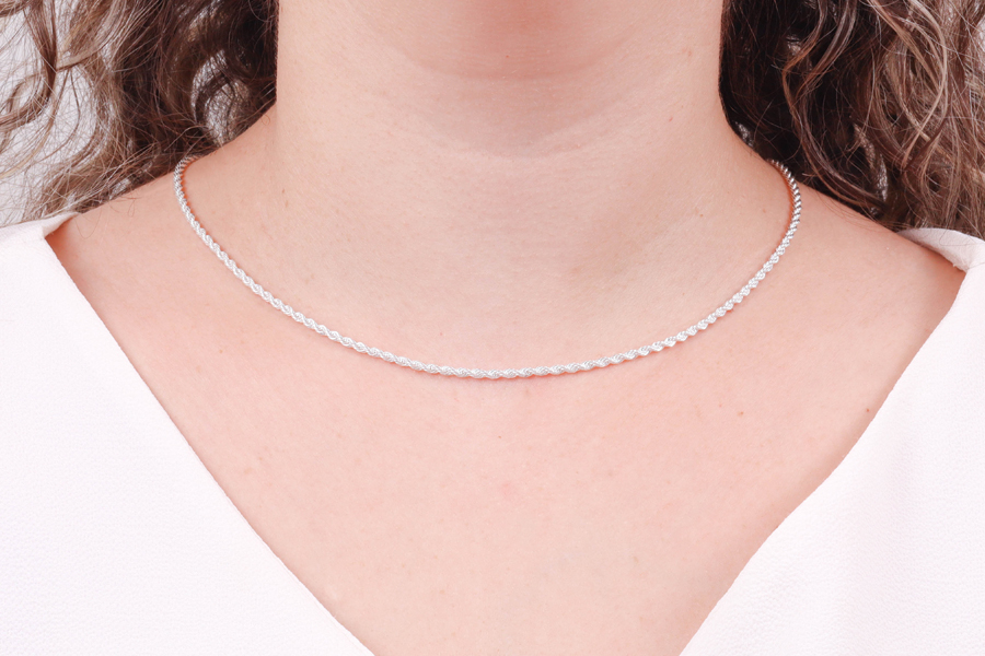GARGANTILHA BANHADA EM RÓDIO BRANCO, PONTO DE LUZ 4mm, ELO VENEZIANA 0,80mm, 40cm COMPRIMENTO, EXTENSOR 5cm COMPRIMENTO, CRAVAÇÃO INGLESA