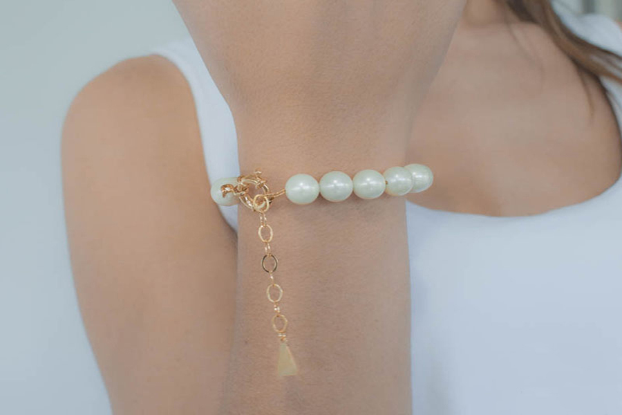 PULSEIRA BANHADA EM OURO, COM 16 PÉROLAS SHELL 10mm